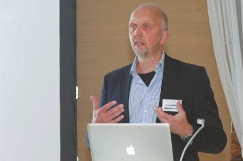 Den Vortragsreigen eröffnete MV Ökonom (VWA) Frank Boshoven, der als Vertriebsleiter West der Crestron Germany GmbH und EMEA Education Program Manager einen Ausblick auf mögliche Entwicklungen der AV-Welt wagte. Die Auseinandersetzung mit der IT ist nach seinen Worten unumgänglich; Netzwerkprotokolle, Workflow- Management sowie die Begleitung des Anlagenbetriebs in Installationen werden künftig weit oben auf der Prioritätenliste für AV-Spezialisten stehen. „Dienstleistung ist ein zunehmend wichtiger Faktor – eine Installation wird nicht durch die Auswahl der Hardware, sondern durch Software definiert“, so Boshoven.