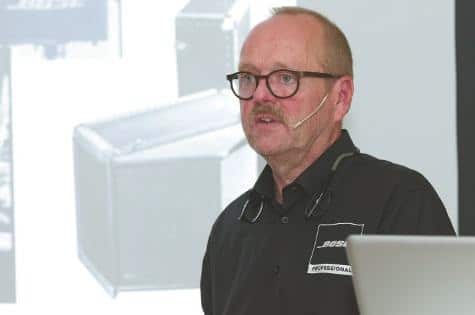 Ob digitale steuerbare Linienstrahler eine Modeerscheinung oder ein Allheilmittel sind, erörterte Frank Ruppert in einem kurzweiligen Vortrag, nachdem er einen Ausflug in die Historie von Bose und die Geschichte der Panaray- Produktlinie unternommen hatte. Neuzugang im Portfolio ist das Modell Panaray MSA12X mit Dante-Interface, das neben zwölf Fullrange- Treibern auch zwölf 50-Watt-Endstufen beinhaltet. Bis zu drei der schlanken Systeme lassen sich übereinander zu einem Array zusammenstellen. Das „X“ im Produktnamen steht für „Extended Frequency Range“, welche in Düsseldorf beim Abspielen einer Aufnahme von Diana Krall gut zu vernehmen war. Bei der Verwendung von zwei oder drei Units pro Seite sollte prinzipbedingt noch deutlich mehr möglich sein.