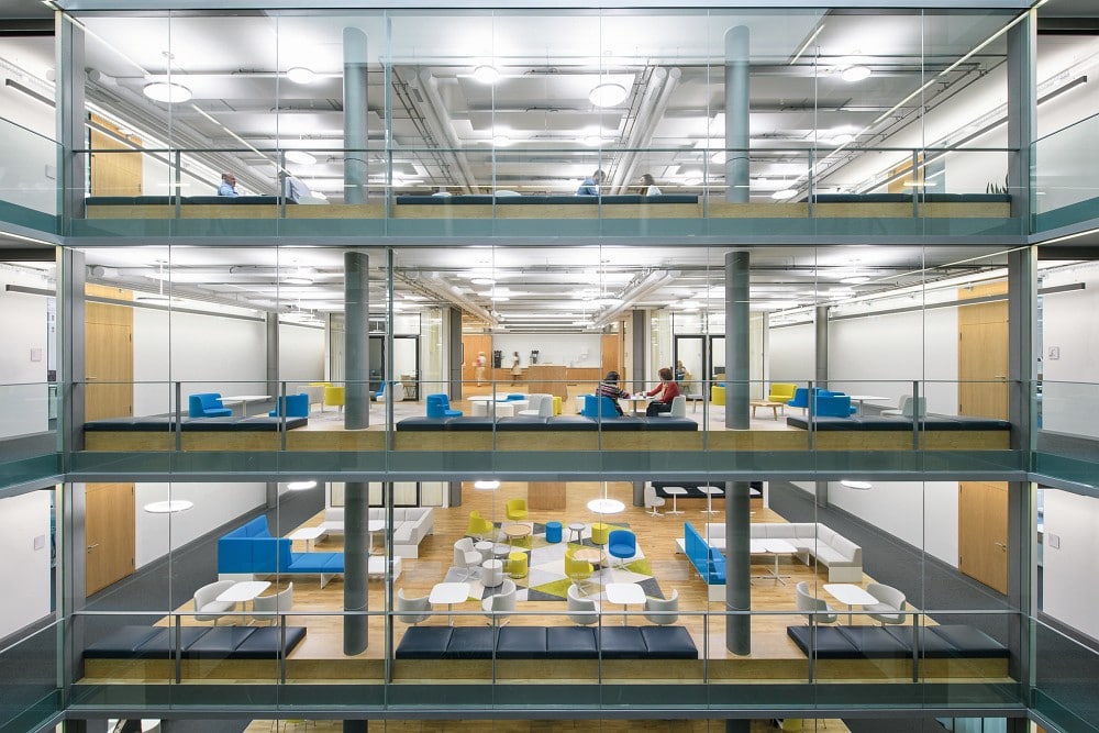 Auch Bayer setzt im Peter-Merian-Haus in Basel auf biodynamisches Licht von Waldmann. (Bild: Dominik Pluess)