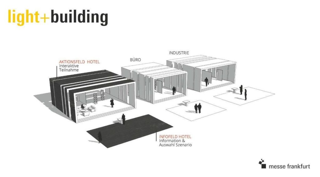 In drei Nutzungsfeldern – Hotel, Büro und Industrie – sollen innovative Lösungen zur elektrotechnischen Sicherheit in realem Umfeld bei aktiven Szenarien auf der SECURE! gezeigt werden. (Bild: Messe Frankfurt)