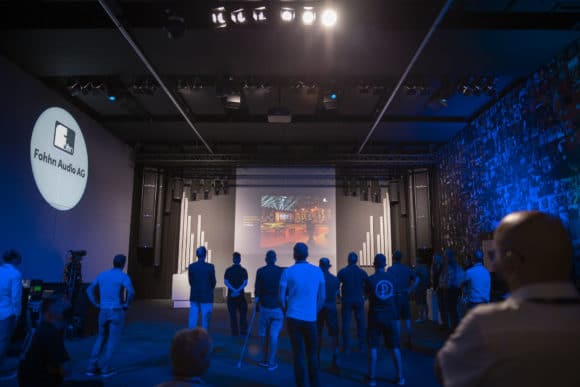 Das just in time zum Event fertiggestellte Fohhn SoundLab bot interessierten Gästen einen Einblick und vor allem Höreindruck in die Produktpalette des Audio Herstellers. Auch zwei Brandneue Subwoofer-Prototypen für die Festinstallation wurden hier präsentiert. Darüber hinaus konnten die beteiligten Partner das SoundLab für kurze Präsentationen nutzen. (Bild: Fohhn)