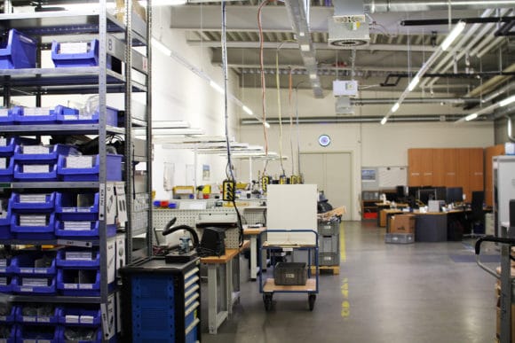 Blick in die Werkstatt: Links befinden sich Arbeitsplätze zum Vorbauen der Technik. (Bild: Nicolay Ketterer)