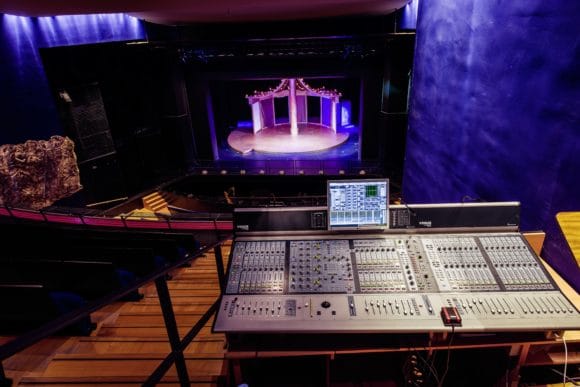 Eins der Theaterprojekte: Im Theater Hof sollte das Audionetzwerk angepasst werden – im Zuge dessen wurden drei Avid Venue-Konsolen installiert und vernetzt. Am FoH-Platz, der sich im ersten Rang befindet, wurde etwa ein Venue D-Show-Pult installiert. (Bild: Thomann Audio Professionell)
