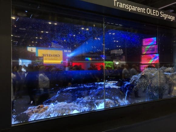 Neben der bereits auf der ISE vorgestellten OLED Wave, die viele Besucher sehr beeindruckt hat, faszinierten vor allem die transparenten OLED Signage Displays am Stand von LG. Meist in vitrinenartigen Schaukästen oder hinter nachempfundenen Schaufenstern wurden Schmuck- oder Modeprodukte hinter den transparenten OLED-Displays in zahlreichen Shop-Situationen gezeigt. Oft waren hinter den Produkten auf der Rückwand der Schaufenster noch klassische Displays angebracht, die zusammen mit den transparenten OLEDs einen harmonischen Tanz mit Inhalten um die ausgestellten Beispielprodukte aufführten. Die Transparenz wurde so zum Beispiel für Schneegestöber oder kunstvolle, animierte Rahmen benutzt. So in Szene gesetzte Schaufenster könnten in Zukunft das stationäre Einkaufserlebnis steigern. Ebenfalls am Stand von LG konnte man bereits den Prototypen eines großen Micro-LED-Displays ansehen. Hierzu wird es bestimmt im kommenden Jahr weitere Entwicklungen geben.
