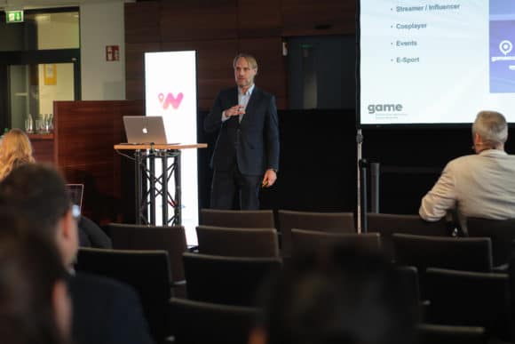 Erfolgsgeschichte gamescom – Die größte Gaming-Messe der Welt. Christian Baur, Leiter gamescom und Events, informiert im Forum „eSports: Entertainment und Professionalität“ über aktuelle Trends (Bild: Dominik Roenneke)