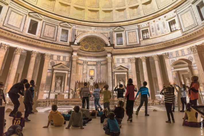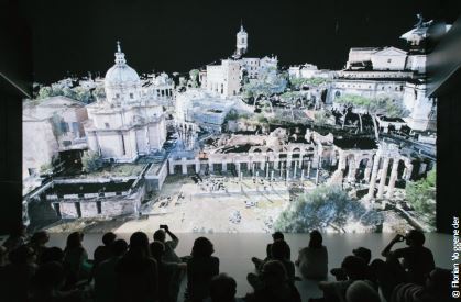 Detailgenaue Reise durch „Rome’s Invisible City“ Acht 3Chip DLP-Projektoren vom Typ Christie Mirage 304K mit Short-throw Optik ermöglichen eine stereoskopische 3D-Darstellung in 4K-Auflösung (Bild: , Florian Voggeneder)