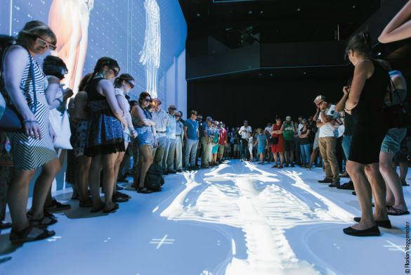 Dank der hohen Auflösung bis zu 8K können 3D-Abbildungen jetzt noch detailreicher und präziser dargestellt werden. Dank der technischen Möglichkeiten, die der neue Deep Space 8K mit sich bringt, können die Besucher nun auch einen virtuellen Anatomiesaal der Zukunft begehen.