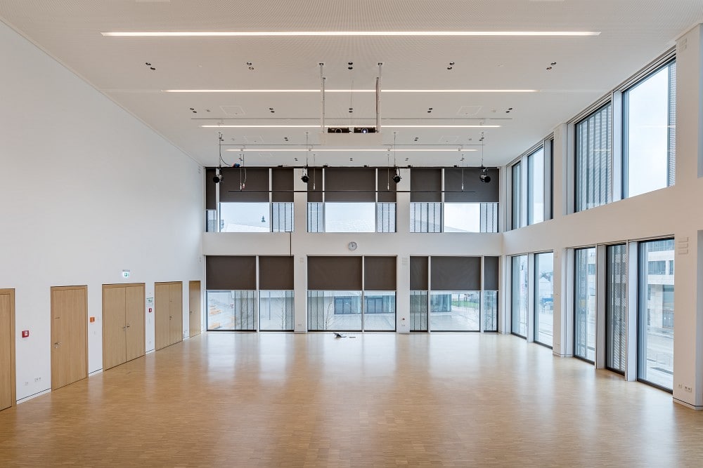 Prunkstück des Hauses ist der Große Saal, in dem je nach Veranstaltung bis zu 270 Personen Platz finden. Multifunktionalität steht im Fokus, und die Palette der musikalischen Events erstreckt sich von Klassik über Jazz bis hin zu Rock und Pop. Darüber hinaus finden im Großen Saal Theateraufführungen, Lesungen, Vorträge und Seminare für Jugendliche und Erwachsene statt. „Während der Planungsphase hieß es stets, dass wir uns beim Saal zwischen einem für Musik oder Sprache optimierten Konzept entscheiden müssten – beides würde sich nicht realisieren lassen“, berichtet WBZ-Geschäftsführer Dr. Florian Pfeil. „Leider war eine derartige Festlegung jedoch nicht möglich, da es in unserem neuen Haus lediglich diesen einen Saal gibt, der für alle Veranstaltungstypen geeignet sein muss. Ziel war somit die bestmögliche Ausstattung sowohl für Musik- als auch für Sprachveranstaltungen.“