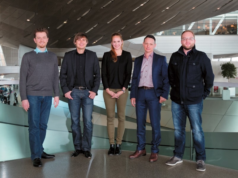 Gruppenbild mit Dame – von links: Martin Wagner (macom), Michael Kottke (macom), Jennifer Zika (Kraftwerk), Denis Hocke (BMW Welt) und Mario Kastl (Kraftwerk) (Bild: Jörg Küster )
