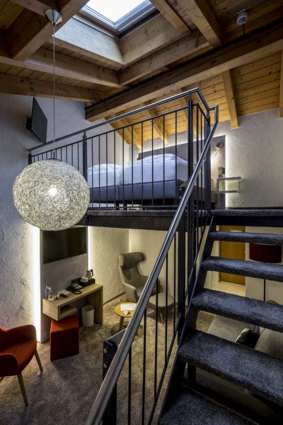 Im Maisonette Studio befinden sich, wie in den anderen Räumen auch, zahlreiche Lichtquellen (u. a. die Sonderleseleuchten Frits von Domus), um größtmögliche Freiheiten bzgl. der Lichtstimmung zu gewähren. (Bild: Alexander Schwarz)