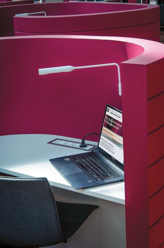 Für die ungestörte Arbeit alleine stehen im DUSconference plus mehrere Plug-In Workstations als Rückzugsmöglichkeit zu Verfügung, die jeweils ab einer halben Stunde gemietet werden können. (Bild: Kindermann)