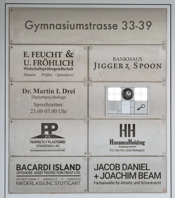 Die Stuttgarter Bar kennt keinen Ruhetag und ist täglich von 17 bis 3 Uhr (an Wochenenden bis 4 Uhr) geöffnet. Die Betreiber empfehlen zur An- sowie insbesondere zur Abreise aus unmittelbar einsichtigen Gründen ein Taxi. Übrigens: Ein „Jigger“ ist der kompakte Becher, mit dem die flüssigen Zutaten eines Cocktails abgemessen werden, und ein „Spoon“ (Löffel) findet bei der Zubereitung der Mischgetränke ebenfalls häufig Verwendung.