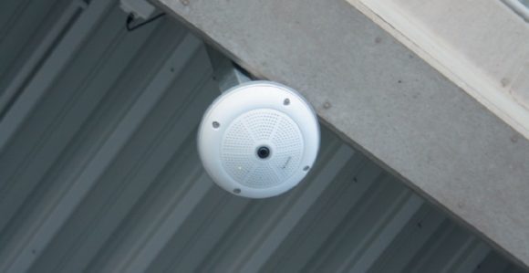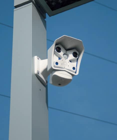 Eine der elf Dualkameras von Mobotix, die im Außenbereich rund um die Uhr alles im Blick haben (Bild: Claudia Rothkamp)