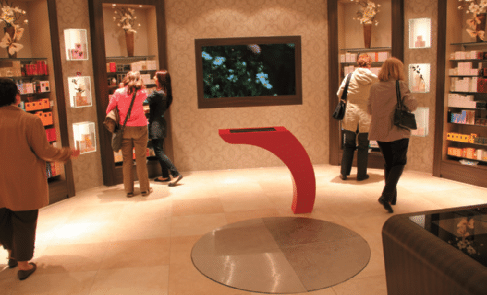 In bestimmten Filialen gibt es Sonderlösungen mit innovativen Herangehensweisen. In Köln hat man die Digital Signage-Software an eine Beduftungsmaschine angeschlossen. Hier kann man über einen Touchscreen aus 16 Düften auswählen und den Duft an der so genannten Duftdusche riechen, während der Screen den passenden Informationsclip zum gewählten Duft zeigt, der nach der Duftprobe komplett verfliegt. So kann man verschiedene Düfte riechen, ohne sich selbst mit immer neuen Düften einzusprühen. In derselben Filiale kann man vor einer Werbewand mit Monitor den Inhalt mit Fußbewegungen steuern. Hier befindet sich vor dem Screen eine Fußmatte, die mit dem IMS-Player verbunden ist. Als Kunde kann man über zwei Pfeiltasten im Inhalt vor- und zurückblättern. Mit Tritt auf einen Punkt zwischen den beiden Pfeilen kann man ein Element auswählen – vergleichbar einem Mausklick – und detaillierte Informationen abrufen.