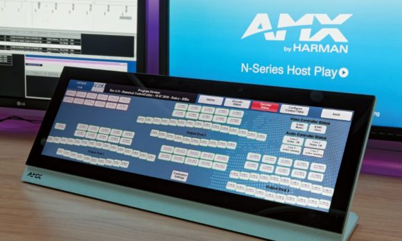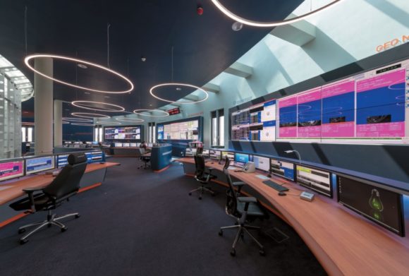 Dreh- und Angelpunkt der IP-basierten Signaldistribution im GEO MCC ist heute die SVSI-Produktfamilie von AMX, mit der SWiCA bereits seit 2012 Erfahrungen in diversen Projekten sammeln konnte. Die Video- und Audiosignalverteilung sowie die KVM-Steuerung erfolgen über ein IP-Netzwerk, dessen Basiskomponenten aus der SVSI 1000er-Serie stammen. Die Steuerung übernimmt ein AMX NX-Controller, die Bedienung erfolgt mithilfe diverser AMX Touchpanels. Sechs AMX Netzwerk Windowing- Prozessoren ermöglichen unterschiedliche Darstellungsformen auf den Videowänden (PiP, Großbild, Split etc.).