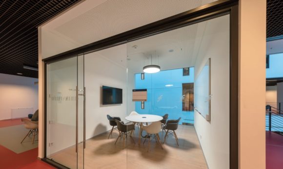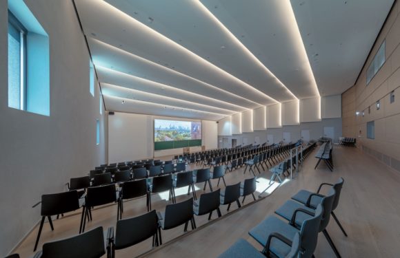 Die Lichttechnik in den Seminarräumen und im Audimax präsentiert sich zweckdienlich: Auf farbige LED-Unterstützung wurde ebenso verzichtet wie auf „stimmungsvolle“ Settings, so dass die Räume gefühlt durchweg einen sehr sachlichen Charakter aufweisen – für die Vermittlung von Wissen vielleicht nicht der schlechteste Ansatz.