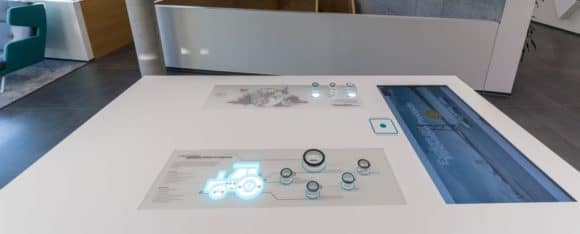 Der interaktive Beratertisch im Showroom des Trelleborg Innovation Centers (Bild: Wolfram Scheible)