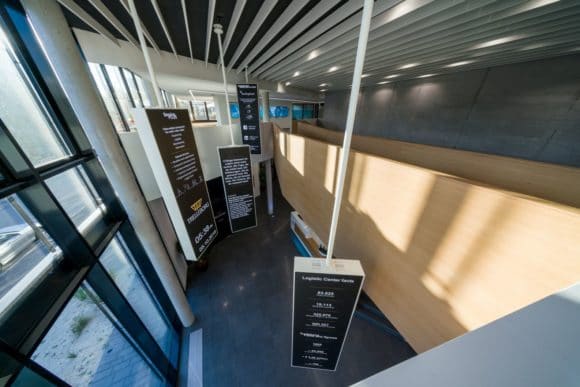 Sogenannte LED-Chandeliers, an der Decke installierte LED-Wand-Flächen, fungieren als passive Info-Displays im Playlistenbetrieb und dienen zur Begrüßung der Besucher und Anzei-ge von Produkt- und Firmen-News, Nachrichten sowie dem Wetter an den Trelleborg-Standorten.