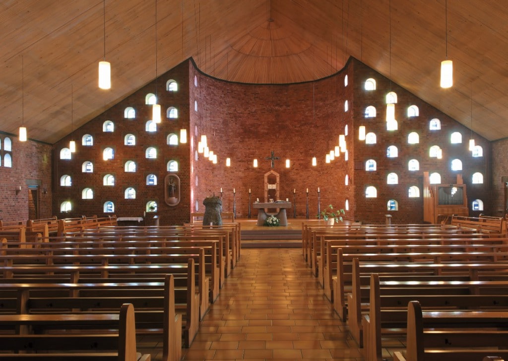 Die Pfarrkirche St. Joseph in Siegburg (bei Bonn) gilt als einer der gelungensten deutschen Kirchenbauten der 1950er-Jahre und steht unter Denkmalschutz – das Architekturkonzept nimmt deutlichen Bezug auf die schlichten Bauformen der frühen Romanik und somit die Geschichte des Christentums. Entgegen des äußeren Eindrucks ist der Innenraum der Kirche nicht in Schiffe unterteilt, sondern präsentiert sich als weitläufige rechteckige Fläche, die im Osten durch das Halbrund des Chores abgeschlossen wird.
