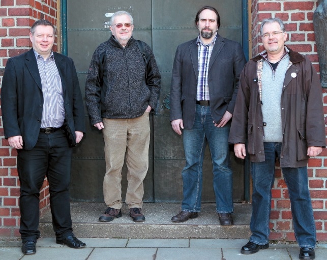 Von links: Klaus Schöpper (dbTechnologies), Josef Schlechtriemen (Gemeinde St. Joseph), Georg Hofmann (dbTechnologies) und Paul Klein (Franken Beschallungs- und Kirchentechnik (Bild: Jörg Küster)