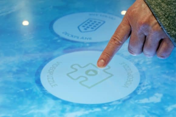 Auf den interaktiven Oberflächen der Multitouch-Tische können sich die Gäste mit Spielen die Zeit vertreiben. (Bild: AIDA Cruises)