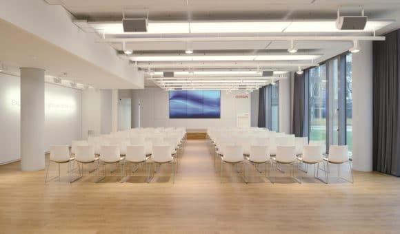 Auf etwa 1.300 Quadratmetern Fläche hat das Hightech-Unternehmen Osram am Hauptsitz in München einen Showroom mit Ausstellungsflächen geschaffen. Die „World of Light“ gibt einen Überblick über die Historie, zeigt die heutigen Schwerpunkte von Osram und ermöglicht Ausblicke in die Zukunft. Um Inhalte zu vermitteln, wird Medientechnik auf komplexe Weise eingesetzt.
