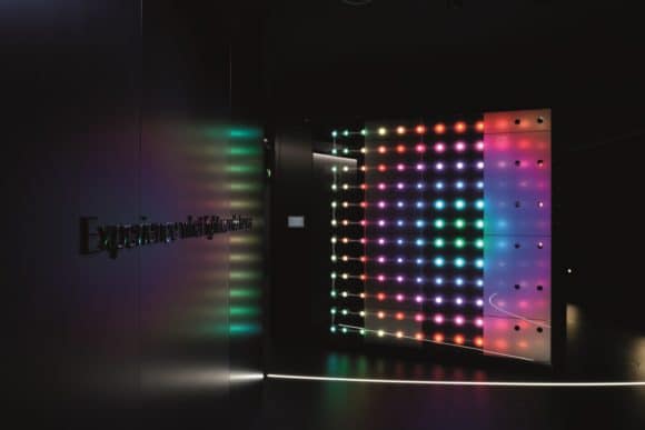 Im Museumsbereich kann der Besucher Lichteffekte und Lichtfarben erleben. Lichtpunkte sind per Touchpanel ansteuerbar, die Anwendung ist über das Netzwerk in die Gesamtsteuerung eingebunden. (Bild: Ranger Design)