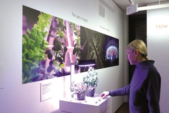 Produkts & Solutions stellt die verschiedenen Produkt- und Themenbereiche von Osram vor, darunter Speziallampen für den Gartenbau, „Horticulture“, oder Lichtlösungen für den Automotive-Sektor. (Bild: Ranger Design)