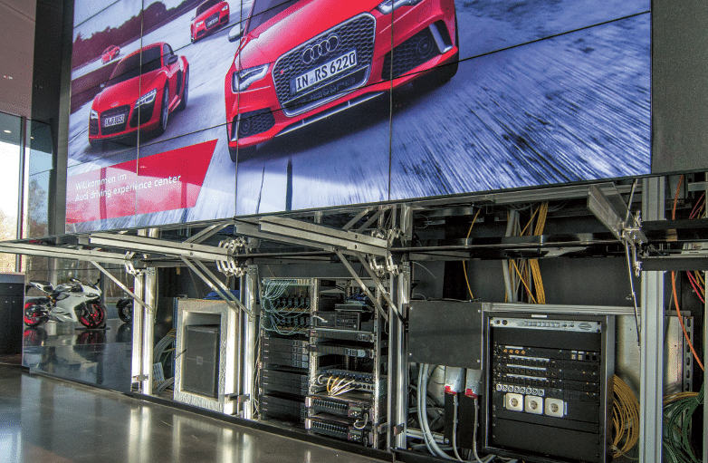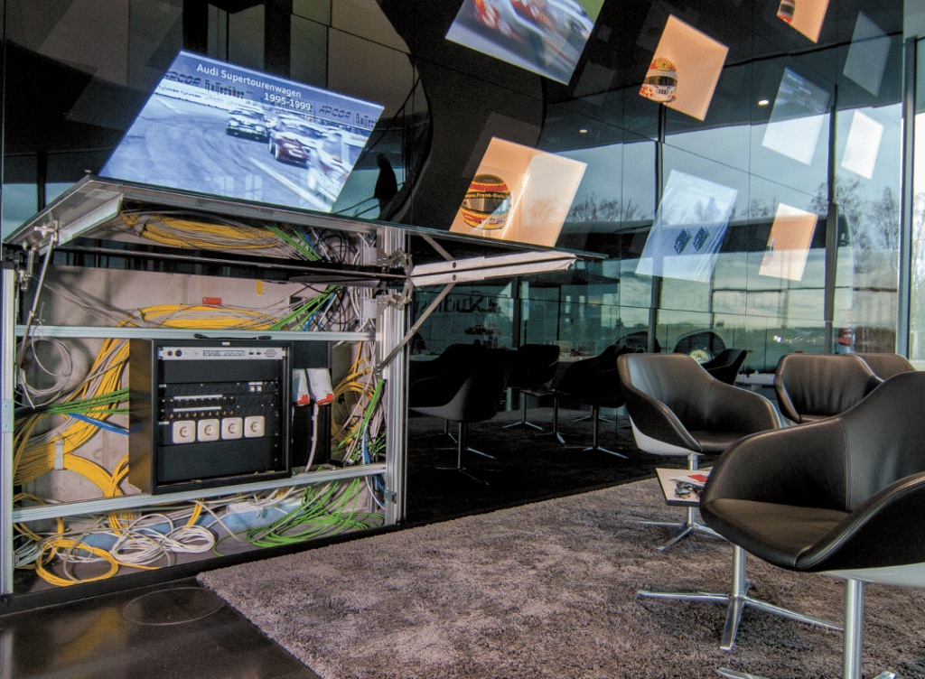 Im Audi Driving Experience Center werden nicht nur Fahr-Trainings auf einer eigenen Rennstrecke durchgeführt. Das angeschlossene Kundengebäude ist als Multifunktions-Areal für die verschiedensten Events ausgelegt. Die Medientechnik spielt dabei eine grundlegende Rolle.