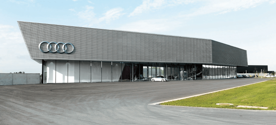 Dem Namen nach könnte man vermuten, im „Audi driving experience center“ (Adec) mit seiner eigenen 3,4 Kilometer langen Rennstrecke gehe es nur ums Fahrerlebnis. Erkundet man jedoch das zentrale Kundengebäude, wird schnell klar, dass Audi hier eine ganzheitliche Markeninszenierung geschaffen hat, bei der die Markenbotschaften über verschiedene Kanäle und Veranstaltungstypen vermittelt werden soll. Vom Fahrertraining bis zur Pressekonferenz, von der Fahrzeugpräsentation bis zur Unternehmens-Tagung, bis hin zu kulturellen Events reicht die Palette der Veranstaltungen, für die das Gebäude ausgelegt ist. Dabei nutzt Audi das Experience Center nicht nur unternehmensintern – auch Audi-Kunden können das Gebäude für ihre Veranstaltungen buchen.