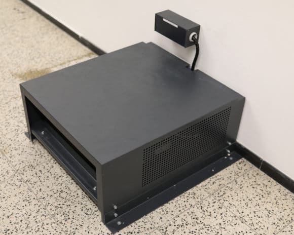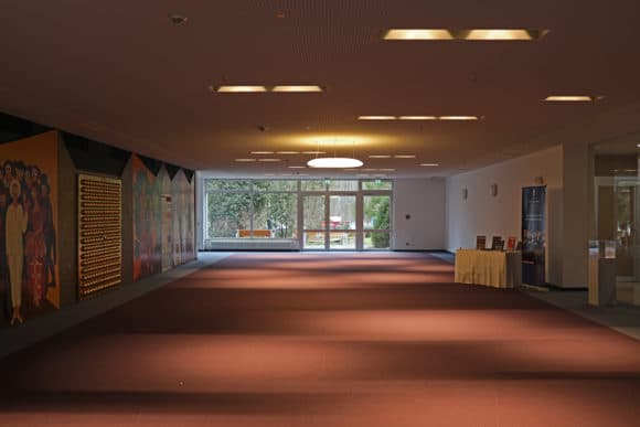 „Wir konnten nicht ausschachten, sonst hätten wir das Fundament erweitern müssen. Salopp wurde vorgeschlagen, die Anschlüsse schlicht ein paar Meter weiter an die Saalrückwand zu verlegen. Das ist allerdings der Fluchtwegebereich. Bei Senioren mit Rollatoren ist selbst eine abgeklebte Leitung ein Hindernis oder eine Stolperfalle. Daher akzeptierten wir keinen mobilen Leitungsverzug im Raum.“