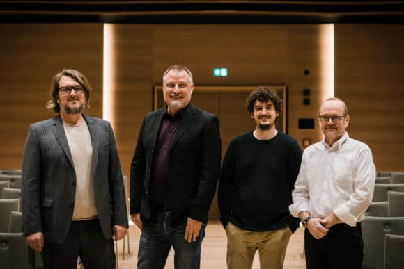 Teamwork bei der Planung und Umsetzung (v.l.n.r.): Systemintegrator Thomas Klug (Media Tek), Fachplaner Guido Kacher (Soniek.com), verantwortlicher Projektleiter Damià Carbonell Tena (Soniek.com) und Bose Professional Sales Manager Frank Ruppert (Bild: Bose)