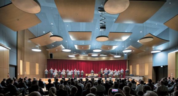 Im neuen Musik-Campus für das Ausbildungsmusikkorps der Bundeswehr in Hilden werden bis zu 140 angehende Orchestermusiker zentral ausgebildet. PROFESSIONAL SYSTEM berichtet über die Planung und Ausführung der Raumakustik, des Schallschutzes und der Bauphysik.