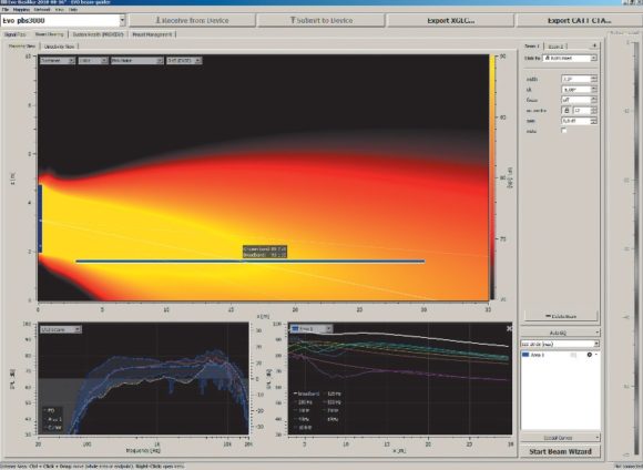 ABB. 03: Steuersoftware der Evolutone PBS Lautsprecher hier mit dem Beamformer und der Auto-EQ-Funktion für eine Evo PBS 3000 Zeile (Bild: Anselm Goertz)