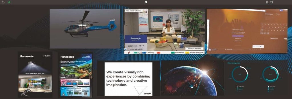 Im COMMsCUBE wird „Ad hoc“ z. B. mit folgendem Szenario gelebt: Ein Produktmanager betritt den Raum, wählt das Thema aus, greift damit direkt auf sein Laufwerk zu und startet die Präsentation. Man trifft sich in kleinem Kreis, um die Präsentation durchzugehen, zu erstellen oder zu verändern. Präsentiert werden kann zusätzlich auf dem gegenüberliegenden 84″ interaktiven Whiteboard-Display, dem TH-84LQ70W oder auf den Powerwalls. Weiterhin sind alle Geräte auf dem 42″ Touch in der Panasonic „Early Warning Software“ sichtbar, mit der Nutzer interne Laufzeiten, Softwarestände, Temperaturen etc. erfragen und automatisch Meldungen bei Unregelmäßigkeiten bekommen können.