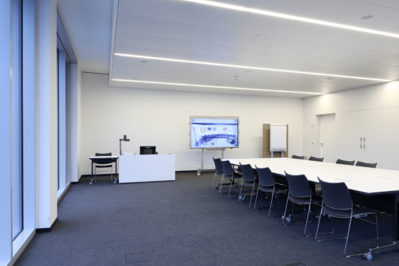 Ein großzügig dimensionierter Seminarraum auf Ebene 2 inklusive Touchscreen mit smartPerform-Anzeige (Bild: Jörg Küster)