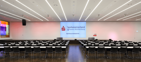 Moderne Medientechnik und beste Bedienbarkeit bei maximaler Flexibilität bezüglich der Raumnutzung – wie man einen derartigen Dreisprung gekonnt absolviert und eine außergewöhnlich hohe Nutzerakzeptanz erzeugt, demonstriert der Neubau der Sparkassenakademie Baden-Württemberg in Stuttgart.