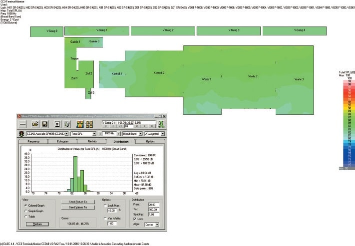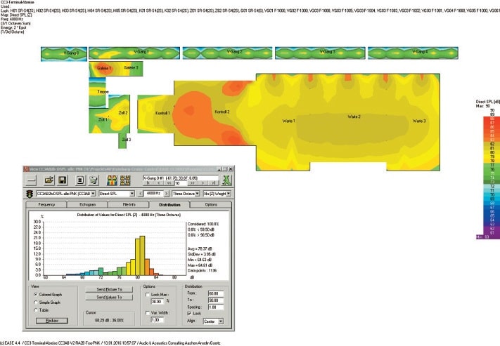 ABB. 5: Störpegelabschätzung für 500 in gehobener Lautstärke sprechende Personen in der Abreisehalle (Bild: Anselm Goertz)