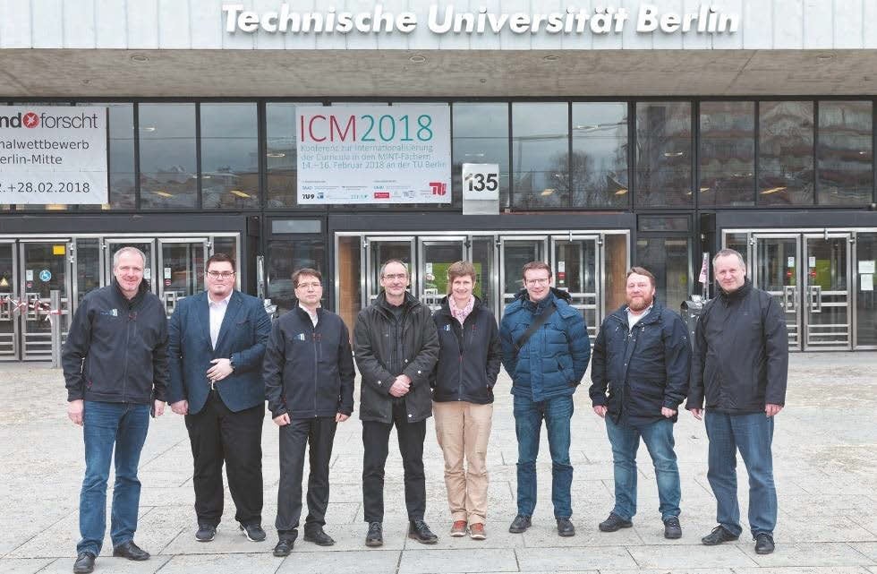 von links: Ingo Nolte (PIK), Sebastian Mensing (macom), Andreas Eckhardt (PIK), Bernhard Müller (MMT), Silvia Weise (PIK), Michael Flachsel (tubIT), Dr. Dirk Heinrich (innoCampus) und Christoph Moldrzyk (TU Berlin) (Bild: Jörg Küster)