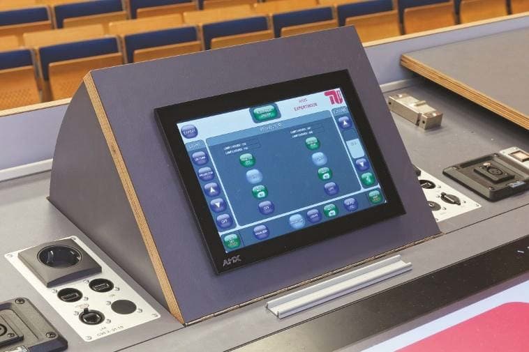 AMX Touchpanel im Dozentenmöbel (Bild: Jörg Küster)