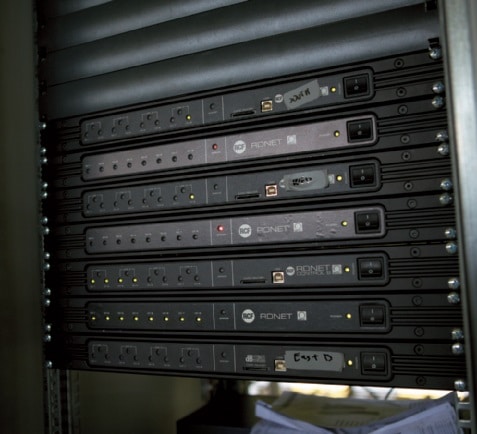 Alle RCF-Module, die im Stadion eingesetzt sind, haben so genannte RDNET-Schnittstellen. Über diese Schnittstellen und RDNET-Controller lassen sich alle Module in ein Bedien- und Überwachungsnetzwerk einbinden, das dann zentral von einem PC aus kontrolliert werden kann. Dazu sind auf einer Technik-Plattform über der Ost-Tribüne fünf „RDNET Control 8“ Master-Geräte positioniert, die sämtliche 196 TTL33-A und 14 TTS26-A kontrollieren sowie Verbindungen zu den Controllern zu der Bestandstechnik und den Lautsprechern in den „Ecken“ schaffen.