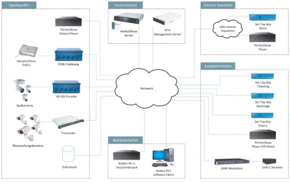 Das auf die Erfordernisse der Elbphilharmonie zugeschnittene Informationssystem basiert auf der PMS-eigenen Content Management Software PerfectShow und umfasst auch IPTV-Komponenten des Anbieters Exterity. Durch diese Kombination konnte in der Elbphilharmonie ein stringentes, vielseitig einsetzbares System implementiert werden, das interne Arbeitsprozesse erleichtern hilft und Besucher sowie Künstler über Aktuelles und Wissenswertes genau informiert.