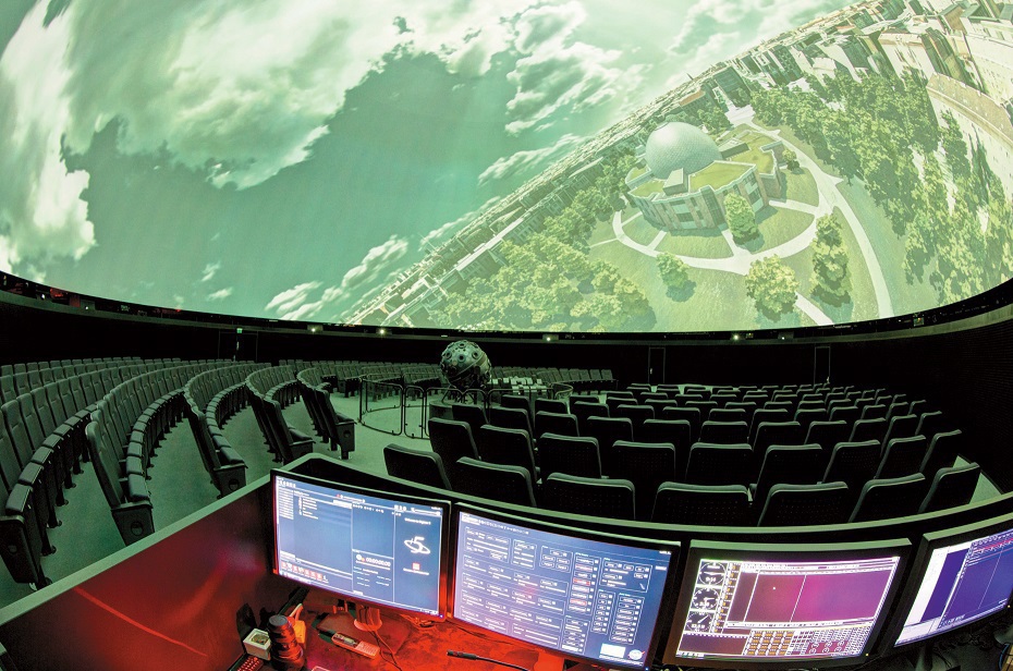 Jeder Projektor liefert ein Teilbild, das nahtlos mit den Bildern seiner Konterparts überlappt, wodurch ein kuppelfüllendes 360-Grad-Vollbild als sogenannte „Fulldome-Projektion“ entsteht. Trotz ihrer guten Qualität wären die DLP-Projektoren nicht in der Lage, die detaillierte Sternenprojektion des „Universarium Modell IX“ zu ersetzen – die Hybridlösung ist für das Planetarium somit unumgänglich.