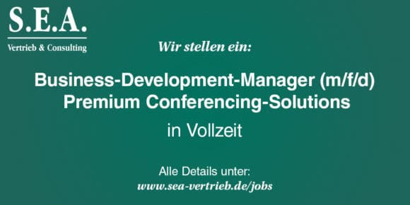 Die S.E.A. Vertrieb & Consulting GmbH, seit rund 20 Jahren erfolgreicher, inhabergeführter und finanziell unabhängiger Lösungsanbieter für professionelle Audiotechnik mit einem exklusiven Portfolio an 20 Premium-Marken, sucht aktuell einen Business Development Manager für den Schwerpunkt Conferencing- & Collaboration-Lösungen.