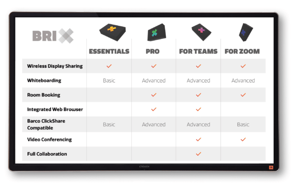 Von Whiteboard und einfacher Bildschirmfreigabe bis hin zu Videokonferenzen oder voller Zusammenarbeit. Für jeden Bedarf gibt es ein CTOUCH BRIX-Modul. (Bild: CTOUCH)