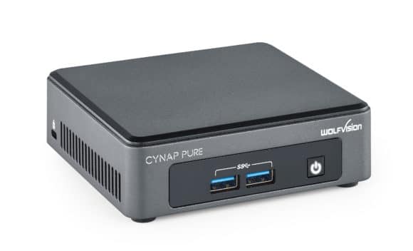 WolfVision stellt mit Cynap Pure eine Erweiterung seines Cynap Systemportfolios vor. Die Cynap Pure verwandelt Konferenz-, Sitzungs- und Klassenräume jeder Größe in Umgebungen für drahtlose Präsentationen. Dafür nutzt es die preisgekrönte drahtlose BYOD-Präsentationstechnologie von WolfVision.