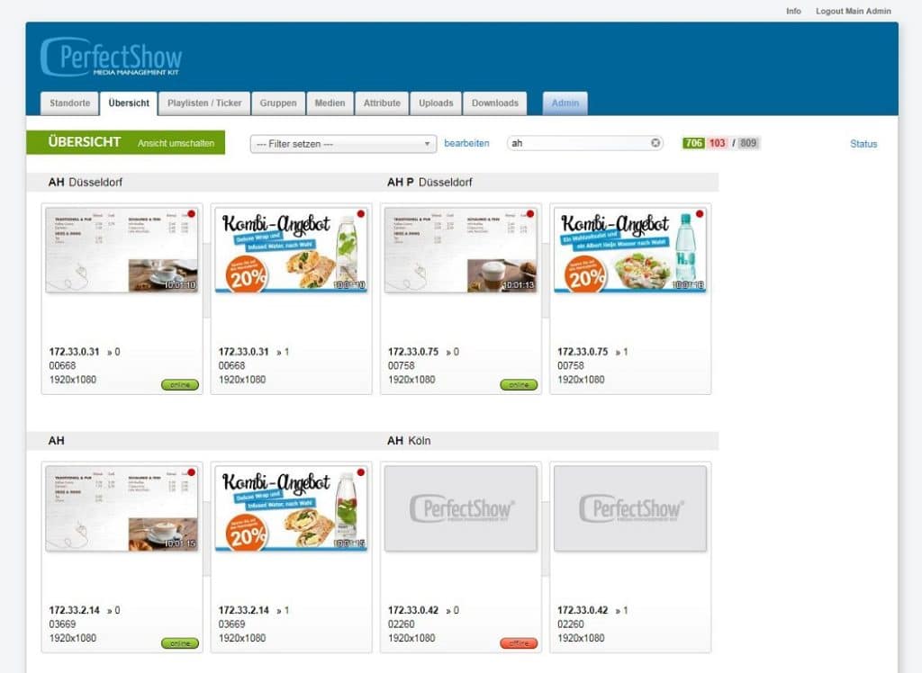 • Digital Signage, Signalmanagement und Rechteverwaltung für Veranstaltungsstätten mit PerfectShow® und PerfectControl®