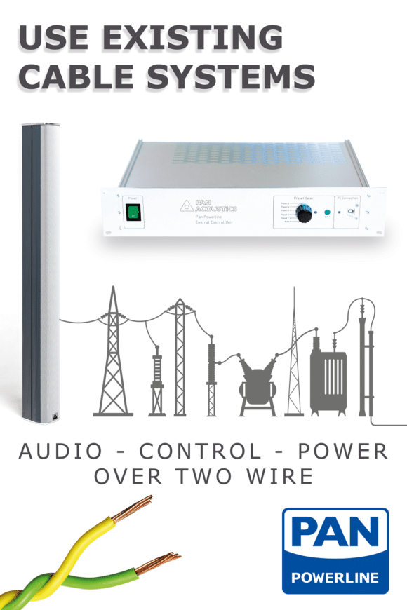 Spart Zeit, Geld und Nerven: Die intelligenten Pan Beam-Lautsprecher mit Powerline-Funktion brauchen lediglich einen Zweileiter! (Bild: Pan Acoustics)