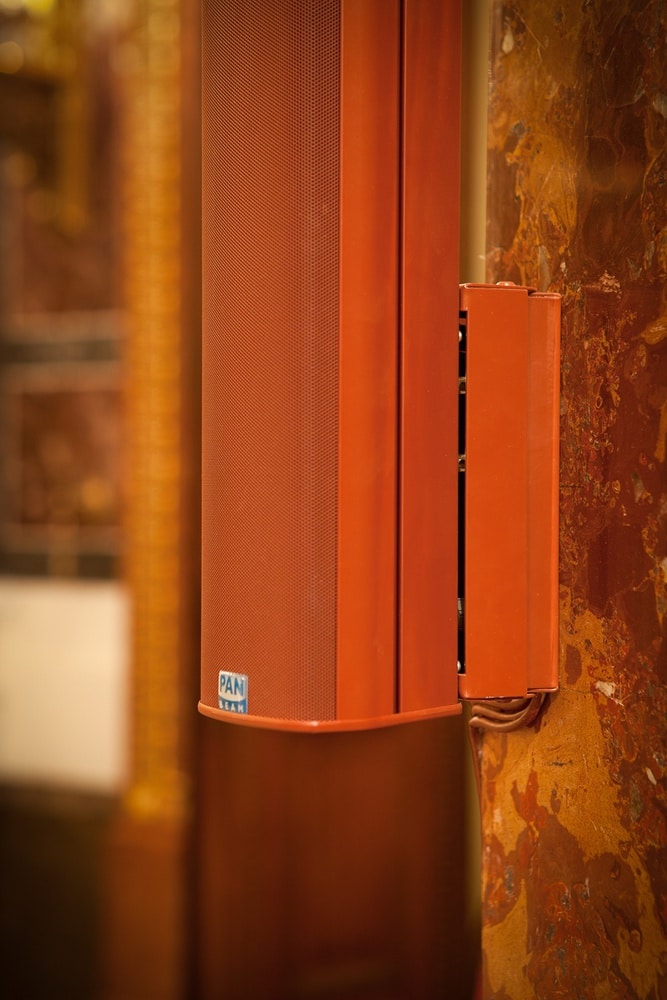 Oder die Beschallungsanlage einer Kirche muss erneuert werden: Hier gestaltet sich der Denkmalschutz oft als Hürde. Mit Hilfe des Pan Powerline Systems ist mit wenig Aufwand vieles möglich: alte Verkabelungen können genutzt und auf diese in Größe und Farbe angepasste Lautsprecher aufgesetzt werden. Zwei bestehende Kabel genügen, um Audio- und Steuerdaten sowie Spannung zu übertragen.