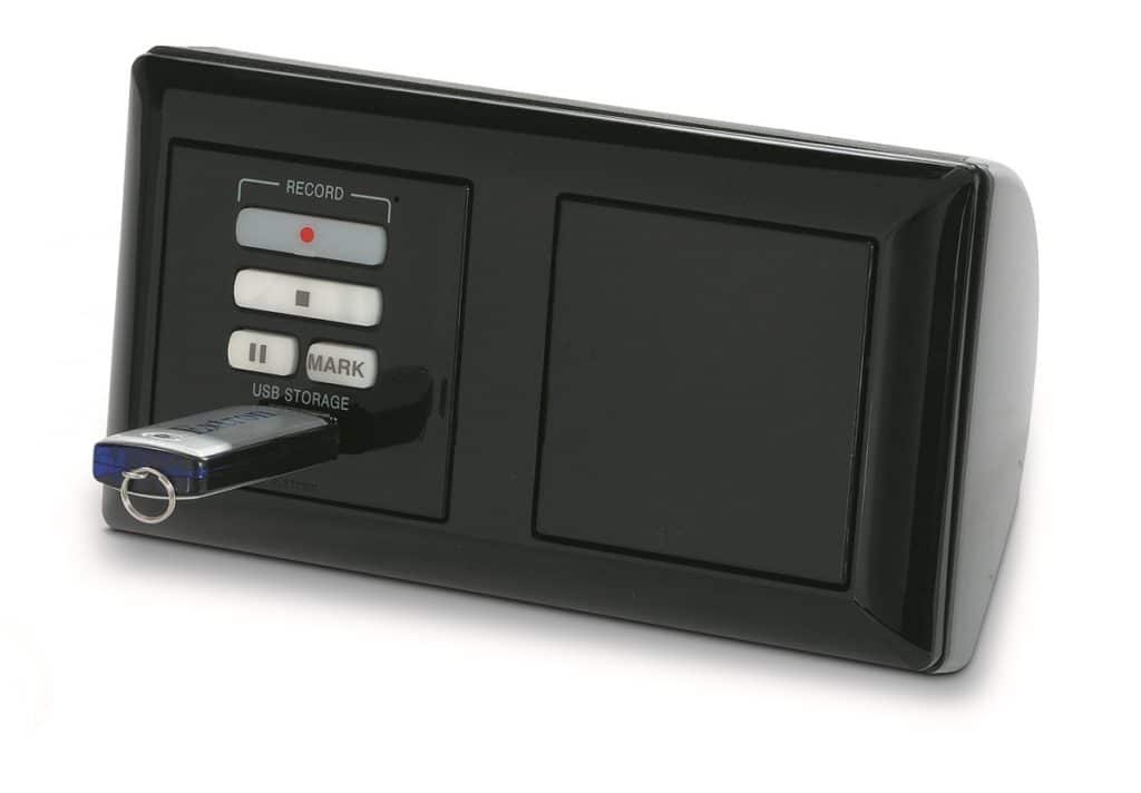 Wird ein USB-Stick in das Bedienfeld eingesteckt, fährt das System automatisch hoch und ist betriebsbereit. Drücken Sie einfach die Aufnahmetaste, um mit dem Aufnehmen zu beginnen. Wenn die Aufnahme abgeschlossen ist, wird durch das Herausziehen des USB-Sticks das System in einen Standby-Modus versetzt und alle mit dem Leistungsregler verbundenen Geräte ausgeschaltet. Die Kernkomponenten können sicher in einem Equipment-Rack untergebracht werden, während für den Benutzer nur das Bedienfeld und der USB-Anschluss sichtbar sind.
